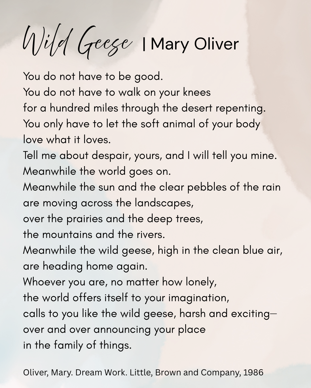 Wild Geese-Mary Oliver Kathryn LeRoy2026-01-10T09:05:53-06:00 Share This Story, Choose Your Platform! FacebookBlueskyLinkedInPinterestEmail Leave A Comment Cancel replyComment Save my name, email, and website in this browser for the next time I comment.